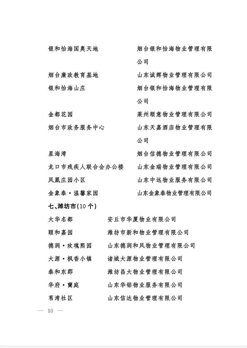 4月19日,山東省住房和城鄉(xiāng)建設廳發(fā)布通知,公布品牌建設典型示范案例和“質量標桿”項目(第一批),濰坊昌大物業(yè)管理有限公司泰和東郡小區(qū)被評為“質量標桿”物業(yè)項目。