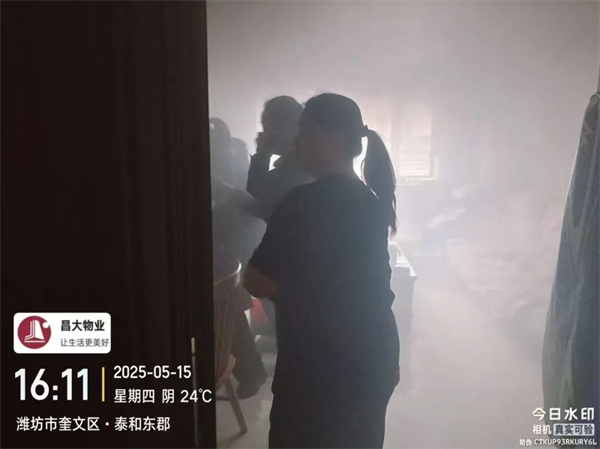 下午,西門(mén)巡查組在例行衛(wèi)生清理過(guò)程中,王紹艷經(jīng)理、隋麗萍、梁曉月及保潔主管毛麗梅四人突然聞到濃烈煙味,隨即聽(tīng)到業(yè)主呼救聲。四人來(lái)不及做好防護(hù),當(dāng)即拎起滅火器,沿樓梯飛奔至業(yè)主家,發(fā)現(xiàn)廚房火勢(shì)已起,濃煙彌漫。