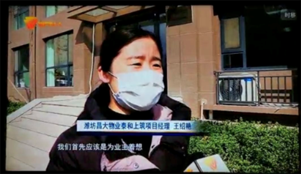昌大物業(yè)的防疫防控措施受到了新聞媒體的特別關(guān)注,在濰坊電視臺(tái)《直播濰坊》欄目中,對(duì)昌大物業(yè)在疫情期間所管轄社區(qū)的防疫防控做法進(jìn)行了專題報(bào)道,并收獲了社會(huì)和業(yè)主的一致好評(píng)。