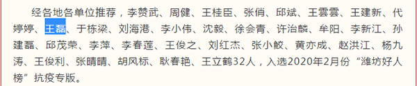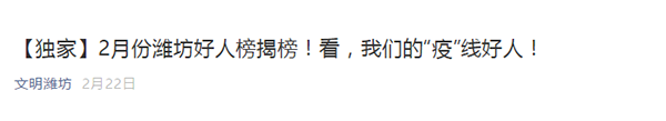 新冠肺炎疫情發(fā)生以來(lái),全市各行各業(yè)涌現(xiàn)出許多感人至深的“好人”事跡,為凝聚抗疫信心,由濰坊市文明辦主辦了“濰坊好人榜”抗疫好人選拔活動(dòng),昌大物業(yè)項(xiàng)目經(jīng)理王磊在帶領(lǐng)團(tuán)隊(duì)防疫抗疫過(guò)程中表現(xiàn)突出,入選了2020年2月份“濰坊好人榜”。其管轄小區(qū)在區(qū)黨工委相關(guān)領(lǐng)導(dǎo)檢查過(guò)程中,因小區(qū)在出入證管理、消殺和重點(diǎn)人群管理等方面的工作受到好評(píng),其做法同時(shí)被街道物業(yè)辦在各物業(yè)項(xiàng)目部推廣學(xué)習(xí),并在《濰坊晚報(bào)》《今日頭條》等新媒體上進(jìn)行了宣傳報(bào)道。