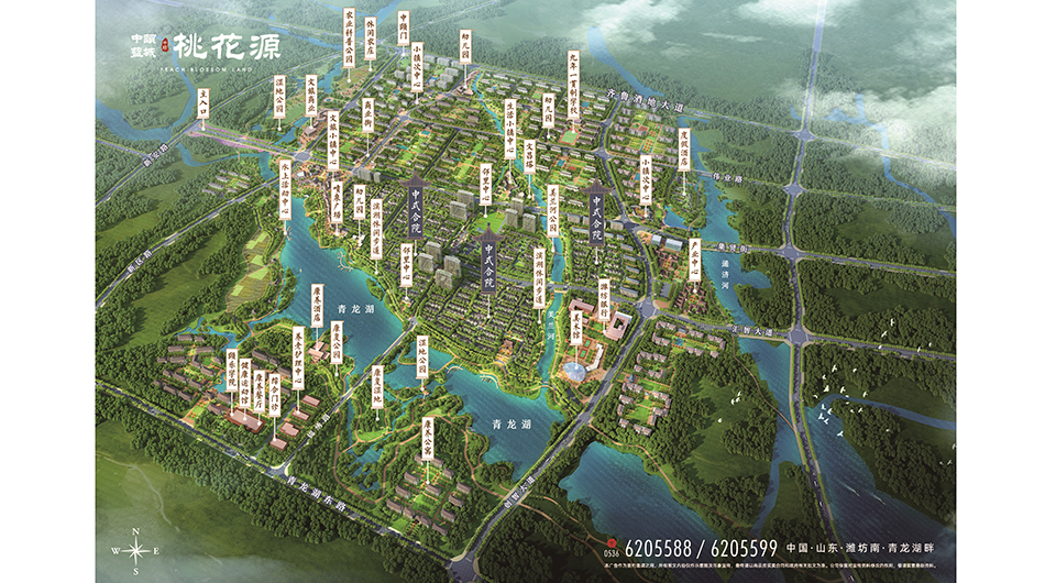 中頤藍城桃花源項目位于濰坊主城區(qū)以南,安丘市北區(qū)青龍湖景區(qū),距離濰坊市政府29公里,距離安丘市政府4.7公里,交通便捷,區(qū)位極其優(yōu)越。項目由中頤健康城置業(yè)投資(安丘)有限公司(由濰坊昌大建設集團、濰坊城投集團、濰坊中醫(yī)院、濰坊恒建集團共同出資成立)投資,攜手藍城集團,以杭州桃李春風、烏鎮(zhèn)雅園等藍城經(jīng)典代表性小鎮(zhèn)為藍本打造,小鎮(zhèn)規(guī)劃占地4000余畝,規(guī)劃總建面165萬平方米。小鎮(zhèn)西至濰安路,南至青龍湖東路,北至齊魯酒地大道,東至通濟河。項目西北向靠山,東南向有青龍湖水系、西石馬水庫、通濟河水系,整體地勢西北高,東南低,背山面水,位置極佳。項目自然資源優(yōu)越,盡享濰坊、安丘雙城配套資源。